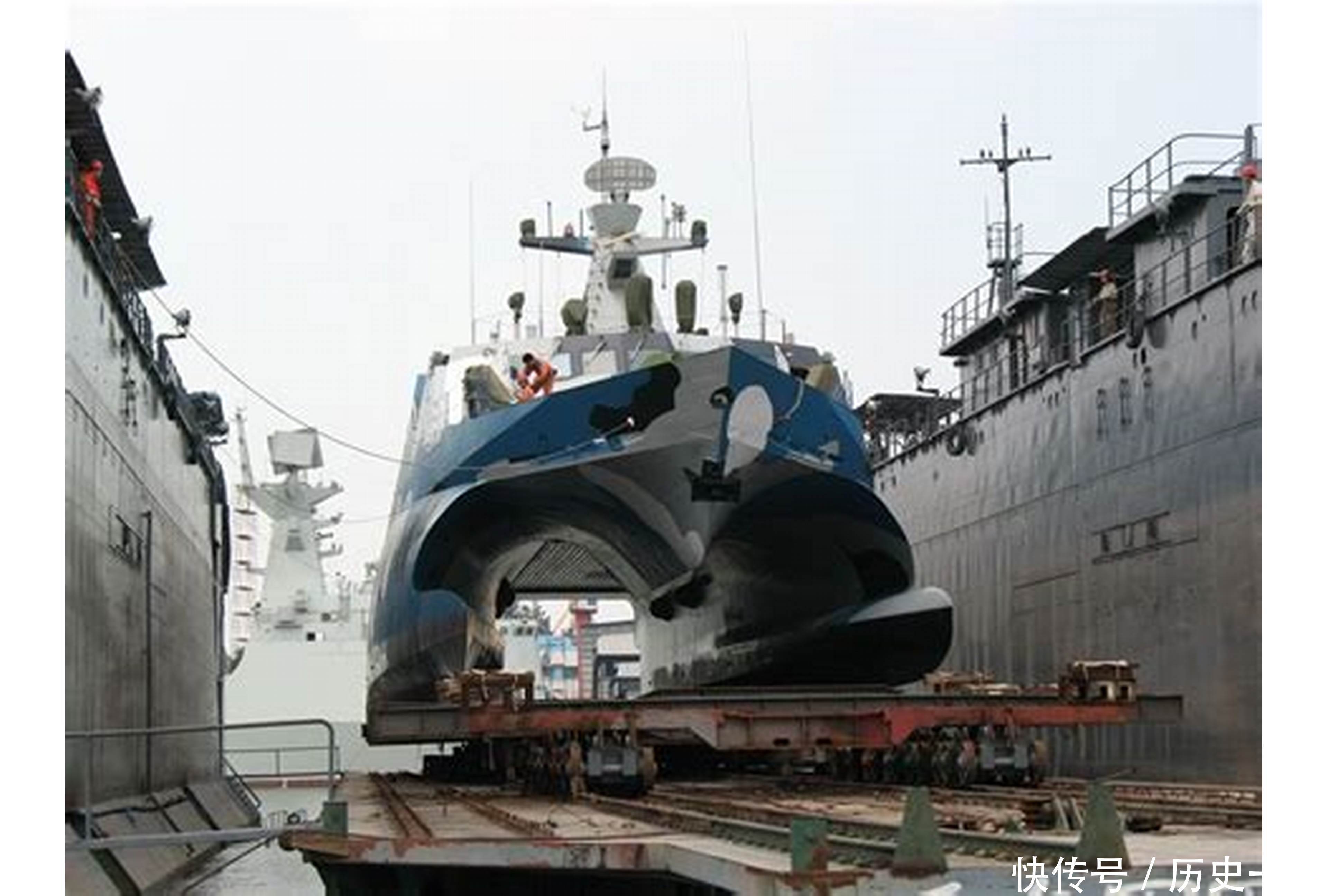 要知道022导弹艇,是在特殊背景下为我国海军的特殊需求研制的一种战斗舰艇,022导弹艇属于非常少见的SWATH船体。