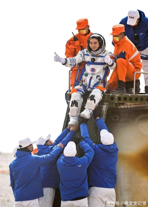 因为是直立的状态,航天员们需要靠自身的力量爬出座椅,同时配合工作人员,才能从返回舱中出来,这也就是为何着陆一个小时,航天员们才陆续从返回舱中出来的原因。