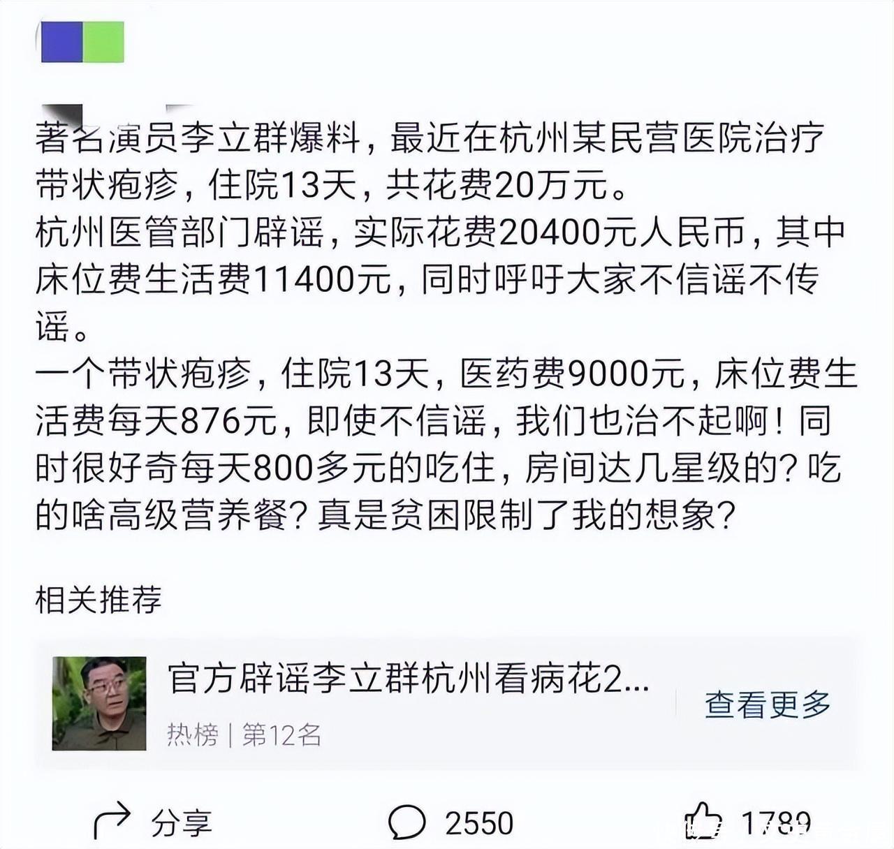 最近,网络上流传着一则关于知名主持人李立群在杭州住院治疗时花费了高达20万元的消息,这一数字引起了大量网友的愤怒和震惊。