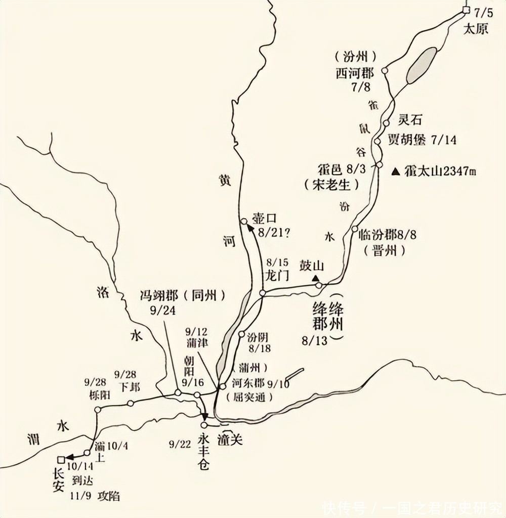 李渊起兵后,直接率军从太原打进关中,攻取长安,然后以长安为根据,四处征战。