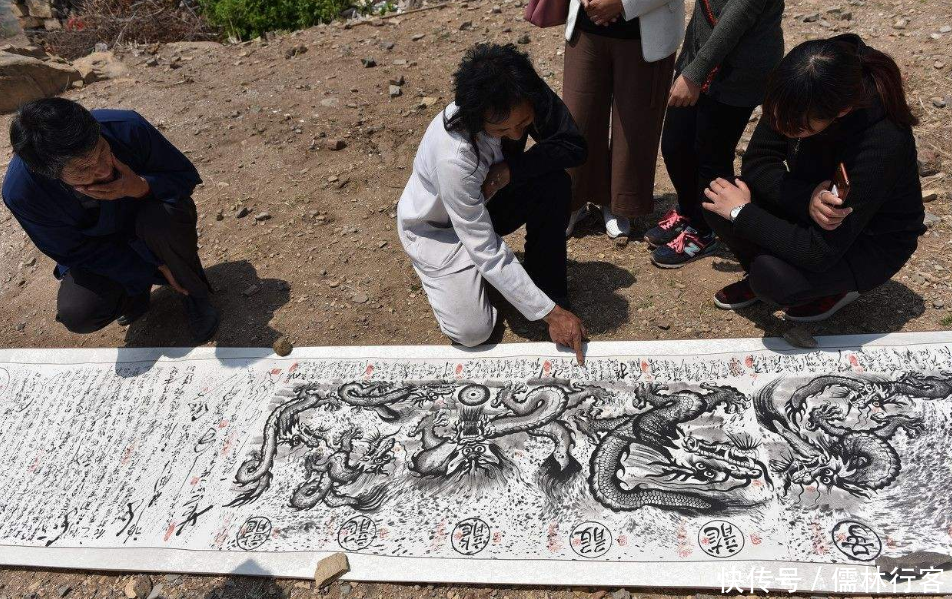 在2018年的时候,马东营甚至耗时10个月之久,完成了一幅长达30米的百龙图,每一条龙旁都有一首天字诗。马东营自己说道,这是寓意画卷展开之时,画上的一百条龙能够一飞冲天。