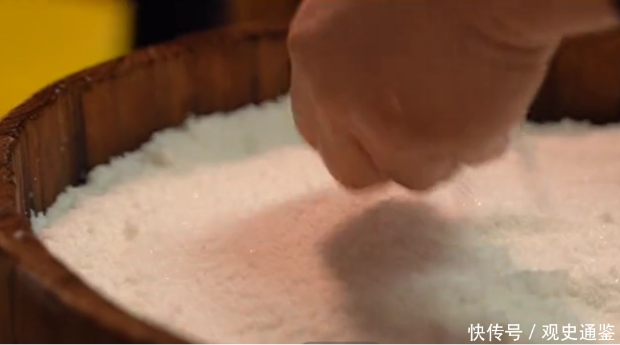 拌入糖的米粉要醒足,多长时间才够?得看气温,天气冷,需要的时间就更长些,一般都要三四个小时,待到糖融化,水分产生,就可以装桶蒸。