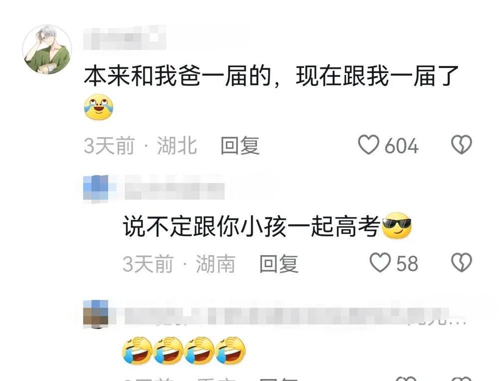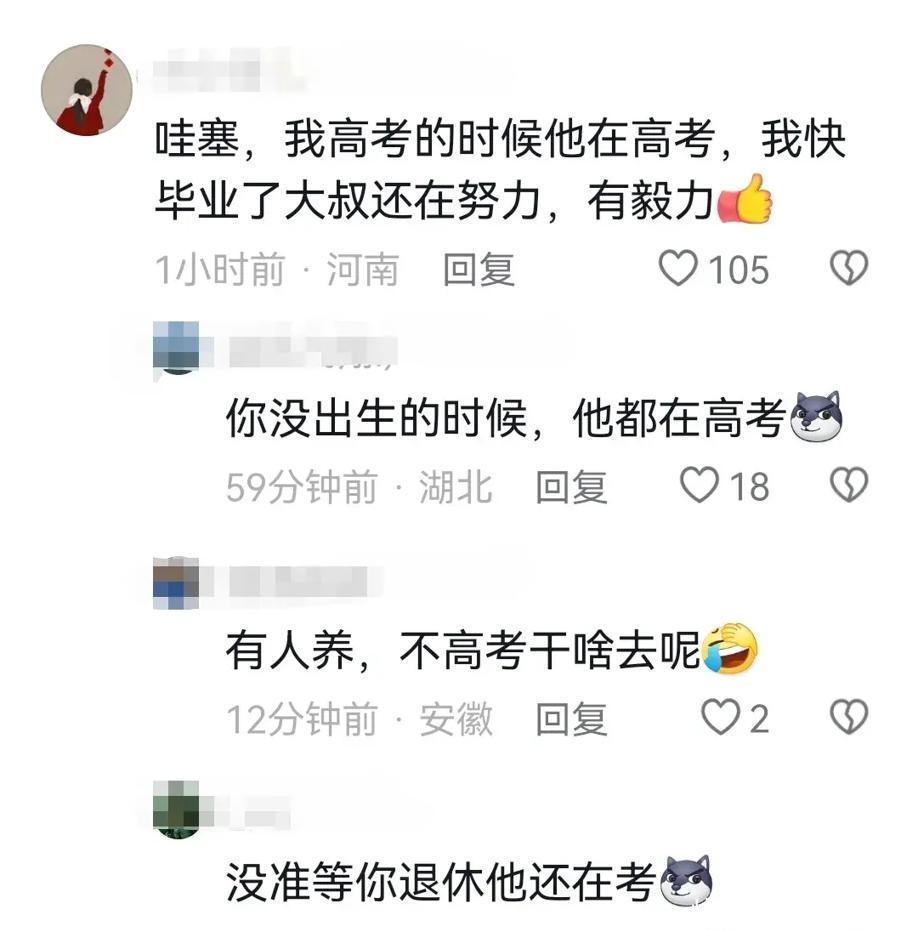 有网友调侃,在如今这个拼娃的年代,怎么还有这么一个老爹,还在拼高考,还要拼28年