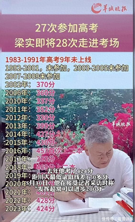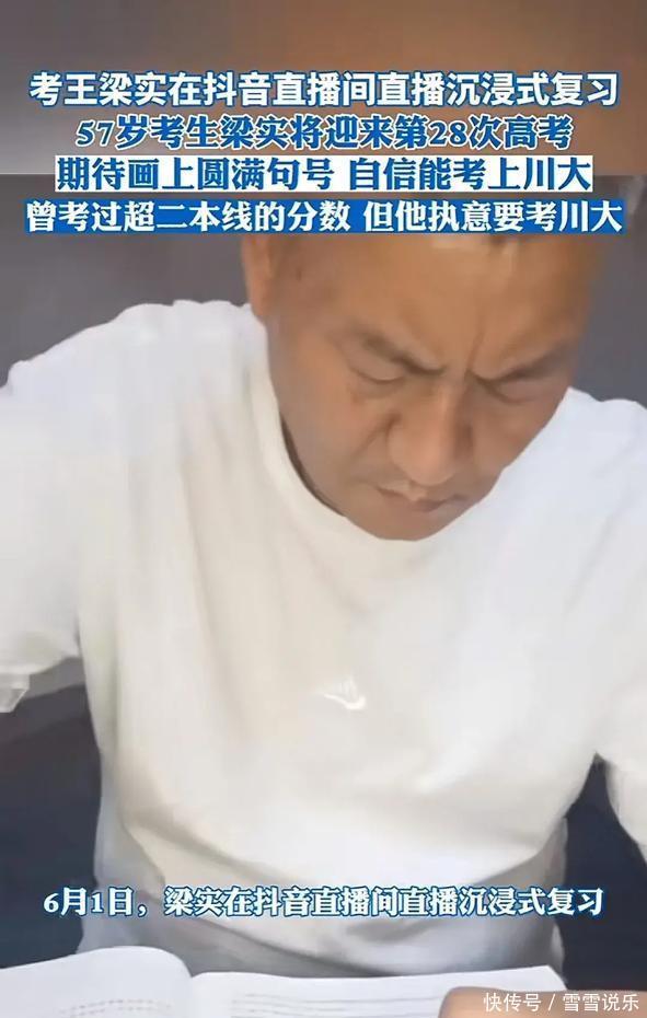 “考王”梁实57岁,已经56岁的他要迎来27岁的自己,第28次参加高考。