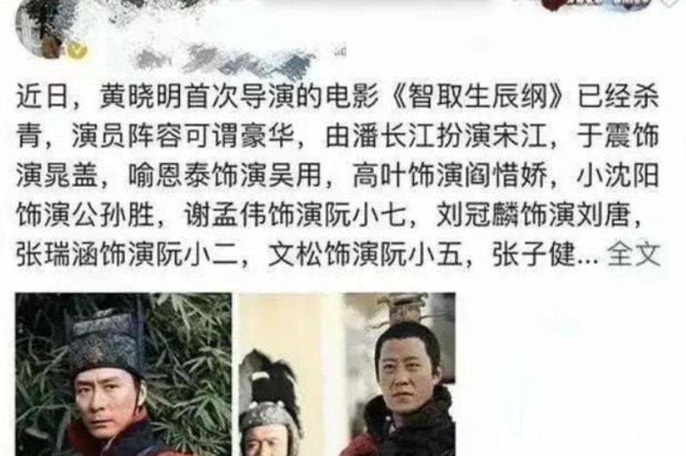? 黄晓明翻拍《智取生辰纲》,潘长江演宋江,4年过去已石沉大海