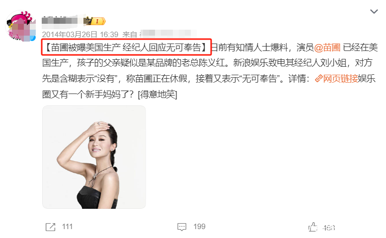 2013年有消息称苗圃怀孕。