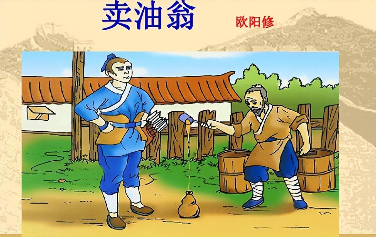 如何才能加快买卖的速度,并且保证每一滴油都不浪费,卖油翁反复练习装油、倒油的动作。