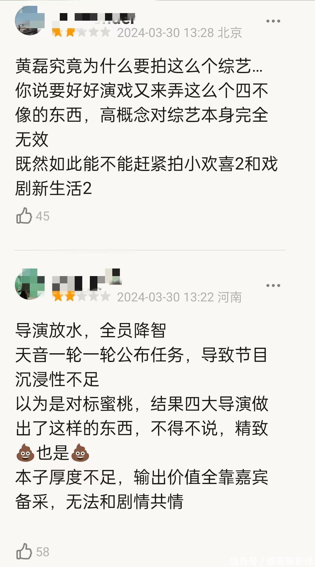 从沉浸式观看的角度衡量,嘉宾并不太适合玩这样的游戏,这是节目最大的硬伤,如果单纯追求综艺效果,也不如《奔跑吧》《五哈》那样纯粹,感觉黄磊想要的东西太多,结果就弄成了一个“四不像”的节目,让人大失所望。