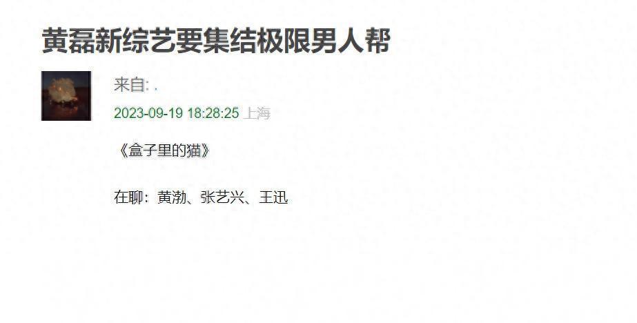 因为这是黄磊在辞录《向往的生活》后,以制作人身份策划的一档新综,将集结黄渤、张艺兴和王迅等“极限男人帮”,单看阵容就很令人期待,节目可谓未播先热。