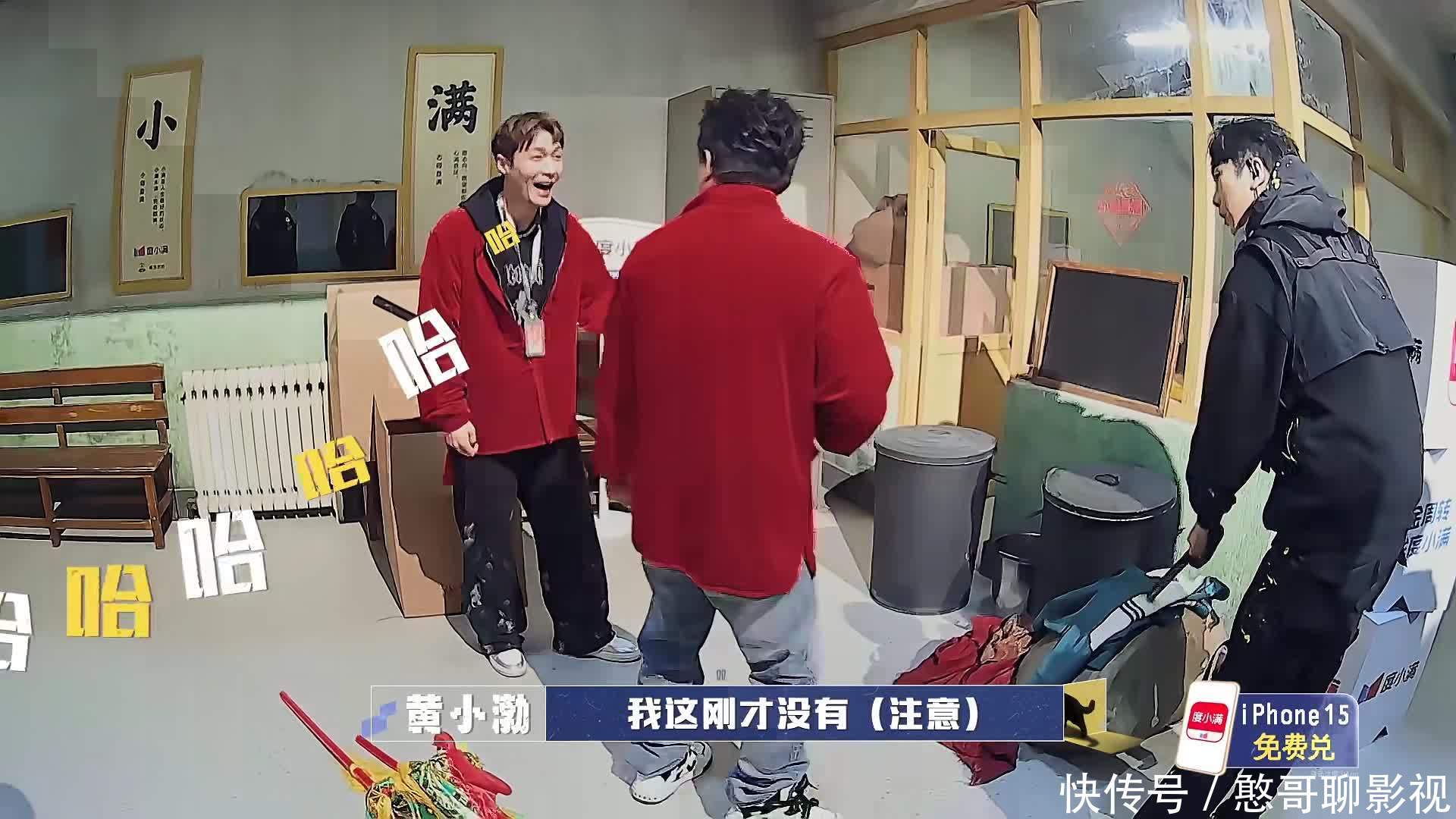 张艺兴说是跟黄渤一起打扫卫生,但他正经不到几秒钟,在NPC质问时又笑了起来。
