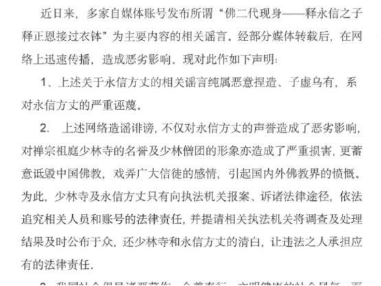 网上的这些谣言愈演愈烈,对此少林寺官方不得不站出来进行回应了,他们表示网上的这些全都是对释永信的抹黑,他们会用法律的武器来保护自己。